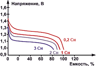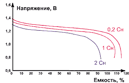 Разрядные характеристики NiCd-аккумуляторов при различных токах
