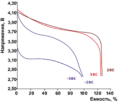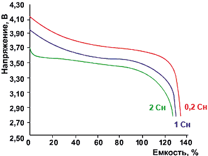 Разрядные характеристики Li-Ion-аккумуляторов при различных