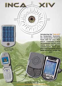 Например, калифорнийская компания Sunpower Systems создала на базе обычной Li-Ion-батарейки для сотового телефона небольшой модуль солнечных батарей. В ясный день 15-минутного заряда хватит на минуту разговора, а пробыв 5 часов под солнцем, батарейка зарядится полностью. Стоимость аксессуара вполне доступная — около 50 долл.