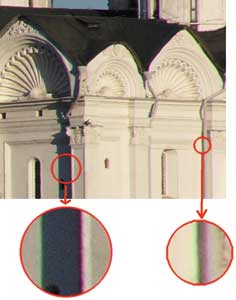 Таким образом, влияние дифракции является своеобразным барьером, ограничивающим реальную разрешающую способность сенсоров. Несложные расчеты показывают, что для сенсоров формата 1/2,5 дюйма дифракционный порог достигается на уровне примерно 4 мегапикселов, для 1/1,8 — на уровне 6 мегапикселов и т.д. Именно поэтому дальнейшее увеличение количества ячеек светочувствительных сенсоров, вполне возможное технически (что нам доказывают производители), по достижении определенного показателя уже не позволяет повысить реальную разрешающую способность фотокамеры, то есть оказывается нецелесообразным с практической точки зрения. В этом нетрудно убедиться, если сравнить снимки современных 10-мегапиксельных камер с их 7- и 8-мегапиксельными предшественниками, оснащенными сенсором такого же формфактора.