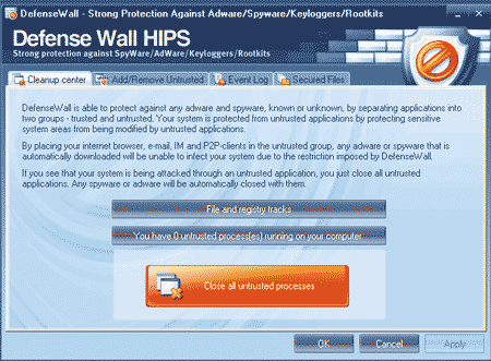 В процессе работы DefenseWall практически никак не общается с пользователем, для которого ее присутствие незаметно. Это и является основным плюсом программы, так как не требуется проводить обучение и отвечать на массу вопросов по поводу допустимости и недопустимости тех или иных операций.