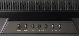 Все основные кнопки — их довольно много: целых семь штук — находятся на верхнем торце монитора, как у многих ЖК-телевизоров. Все кнопки имеют одинаковый размер и форму и размещены в ряд на равном расстоянии друг от друга.