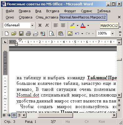 Если вам часто приходится копировать документы из Интернета в Word, значит, вам постоянно требуется преобразовывать таблицы в тексты. Ничего сложного в данной операции нет — достаточно установить курсор на таблицу и выбрать команду Таблица => Преобразовать => Таблицу в текст. Однако при большом количестве таблиц, зачастую еще и многократно вложенных, все эти преобразования отнимают немало времени. В такой ситуации очень полезным может оказаться сохраненный в шаблоне Normal.dot специальный макрос, выполняющий данное преобразование, а для большего удобства макрос стоит вынести на панель инструментов.