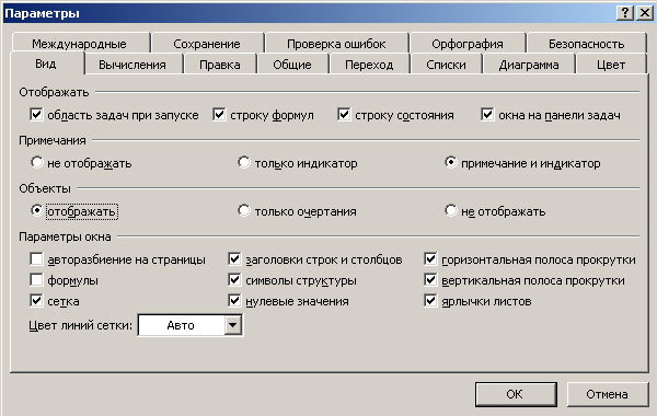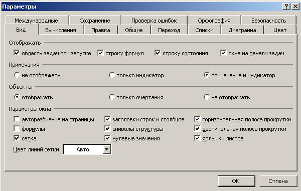 Однако иногда данный способ не срабатывает, и по-прежнему оказываются видны только индикаторы, а примечания высвечиваются лишь при наведении на них мыши. Данная ситуация возможна в том случае, если у вас отключено отображение объектов. Чтобы вновь все объекты стали отображаемыми, воспользуйтесь командой Сервис => Параметры => Вид и в разделе Объекты выберите вариант Отображать (рис. 21).