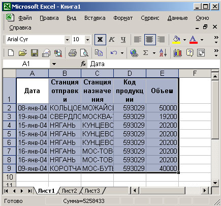 Как правило, ширину столбца (или нескольких столбцов) изменяют, перетаскивая границу его заголовка до необходимого значения. Некоторое неудобство данной операции заключается в том, что при больших таблицах выбрать правильную величину довольно сложно — не исключена вероятность, что на следующем экране в столбце окажутся более длинные названия, которые не поместятся туда по ширине. Поэтому в таких случаях лучше предоставить выбор оптимальной ширины столбца самой программе. Для этого дважды щелкните мышью на правой границе заголовка выделенного столбца (курсор примет вид крестика со стрелочками на концах), и ширина столбца установится по ширине ячейки с самым длинным текстом.