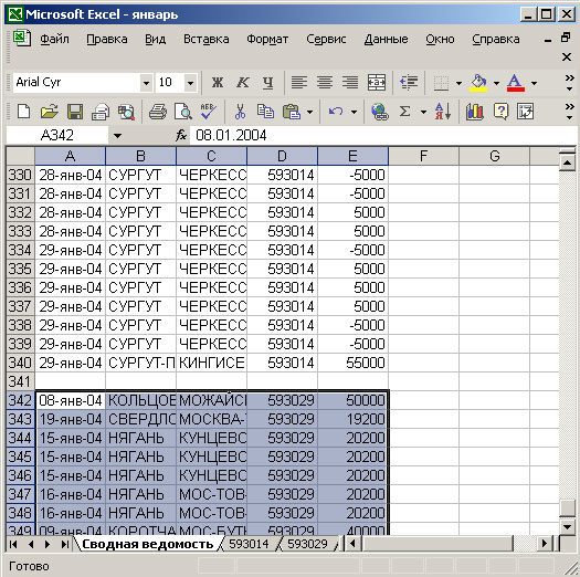 После этого создайте лист для сводной ведомости, установите курсор в место вставки и вставьте данные из буфера обмена. Теперь перейдите на лист с другими данными, запустите макрос, вновь вернитесь на лист сводной ведомости и вставьте данные (рис. 26) и т.д. После этого вам останется лишь вычислить итоги, и сводная ведомость будет готова.