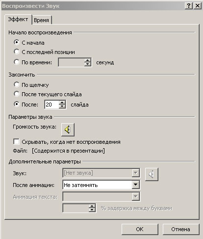 Рис. 33. Установка звукового фонового сопровождения для группы слайдов