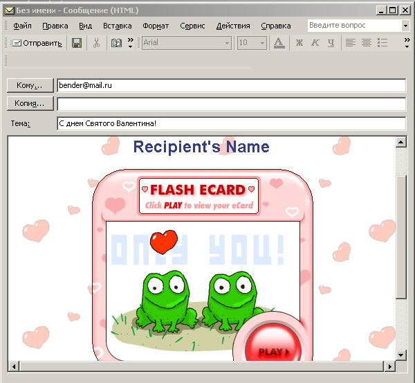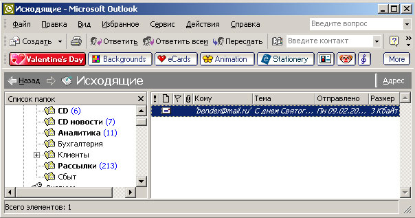 После установки плагина в меню Outlook добавляется серия дополнительных кнопок, каждая из которых предоставляет множество забавных возможностей (рис. 35). Подключившись к Интернету, можно легко сформировать поздравительное письмо-сообщение, щелкнув, например, по кнопке Valentine‘s Day (рис. 36).