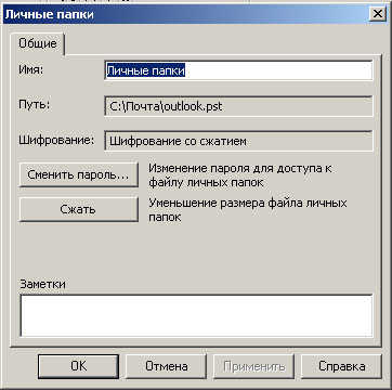 Как показывает практика, безопасность никогда не бывает лишней, в связи с чем на почтовые PST-файлы также можно устанавливать пароли, и сделать это можно прямо в среде Outlook. Для этого выберите команду Файл => Обработка файла данных, щелкните необходимый PST-файл и нажмите кнопку Параметры (рис. 37). Затем щелкните по кнопке Сменить пароль и в соответствующих полях введите старый и новый пароли. Чтобы пароль был сохранен в компьютере и чтобы его не приходилось вводить при каждом открытии файла PST, установите флажок Сохранить пароль в списке паролей.