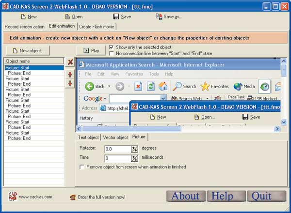 Как следует из названия, программа Screen 2 WebFlash позволяет осуществлять запись экранных действий и их сохранение в качестве Flash-фильма. Средства обучения создаются быстро и также быстро размещаются в Сети. После окончания процесса записи можно добавлять текст и картинки, а также видоизменять презентацию по усмотрению пользователя.
