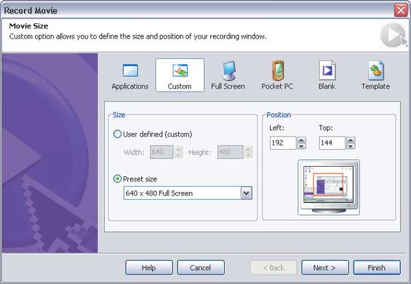 RoboDemo позволяет настраивать размеры экрана записи; имеется режим, при котором запись автоматически подстраивается под размер окна открытого приложения (рис. 8).