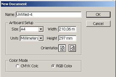 Работа над картинкой начинается с создания нового документа, что происходит обычным образом по команде File=>New (Файл=>Новый). При этом в окне New Document (Новый документ; рис. 1) нужно сразу определить, для чего предназначается документ — для публикации в Интернете или для печати. В первом случае выбирается режим RGB, а во втором — CMYK. Затем на экране появится документ, ограниченный черной рамкой (рис. 2). Внутри этой рамки обычно (то есть при установленном принтере) имеется дополнительная пунктирная рамка, определяющая рабочую область документа, внутри которой и должен быть сформирован рисунок. Все, что окажется вне пунктирной рамки, не будет выводиться на печать. Увеличение и уменьшение масштаба изображения, как и в Photoshop, производится нажатием комбинации клавиш: Ctrl+«+» для увеличения масштаба, Ctrl+«–» для уменьшения.