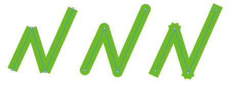 Значения параметра Join определяют внешний вид внутренних точек ломаной линии: первый вариант обеспечивает формирование острых точек, второй — скругленных, третий — прямых. Поэтому округлые вершины будут получаться только при выборе средних значений параметров Cap и Join.