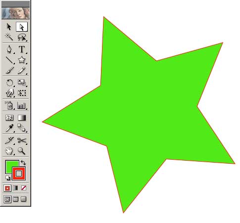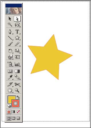 Давайте создадим, например, изображение звезды. С этой целью дважды щелкните в палитре на квадратике Fill и установите нужный цвет для заливки фигуры. Затем активизируйте квадратик Stroke и определите цвет границы. Выберите из палитры инструмент Star (по умолчанию он скрывается под инструментом Rectangle, и его можно найти, удерживая клавишу Alt) и сформируйте звезду нужного размера (рис. 16).