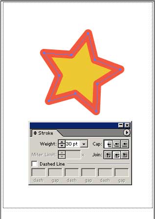 Активизируйте палитру Stroke, увеличьте ширину границы (например, до 30 пикселов) и установите средние значения параметров Cap и Join вершины звезды примут округлую форму (рис. 17).
