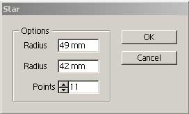 Попробуйте теперь в новом документе создать звезду с большим количеством вершин и закрасить ее вручную подобранным градиентом. Установите вариант None как для цвета заливки, так и для цвета границы. Выберите инструмент Star и щелкните на листе появится меню настройки параметров звезды, в котором нужно определить желаемые установки, например как на рис. 20. Получится пока не закрашенная звезда (рис. 21).