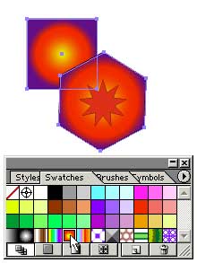 После этого откройте палитру Swatches и закрасьте звезду подходящим градиентом или узором, например как на рис. 18.