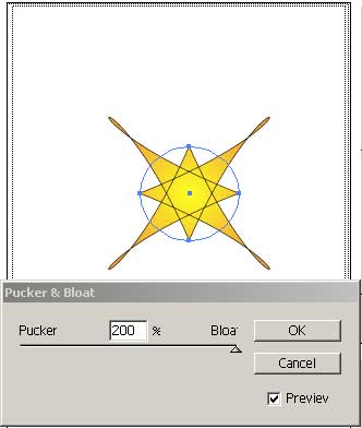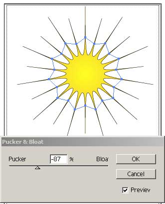 Рис. 35. Солнышко (указаны настройки Pucker & Bloat)