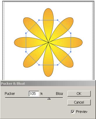 Рис. 37. Первый вариант цветка (указаны настройки Pucker & Bloat)