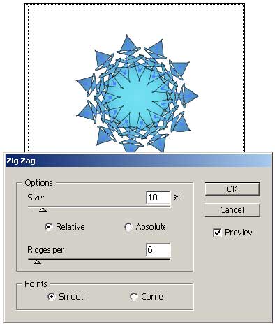 Рис. 42. Снежинки (указаны настройки фильтра ZigZag)