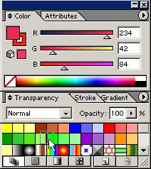 Палитра Swatches (рис. 7) представляет собой каталог стандартных цветов, градиентов и узоров, который можно редактировать, дополнять и настраивать. Здесь можно не только выбирать, но и хранить цвета, градиенты и узоры, ранее подобранные вами для конкретных изображений. Это очень удобно, так как, подобрав цвет к конкретному объекту, пользователь тут же забывает о нем и переходит к другому цвету. В дальнейшем для его восстановления, как правило, приходится открывать соответствующее изображение и брать образец цвета инструментом Eyedropper (Пипетка). А ведь можно поступать проще, сохраняя нужные цвета в палитре Swatches (для чего, собственно, она и предназначена), — просто перетащите активный квадратик с цветом из палитры Color в палитру Swatches (рис. 8).