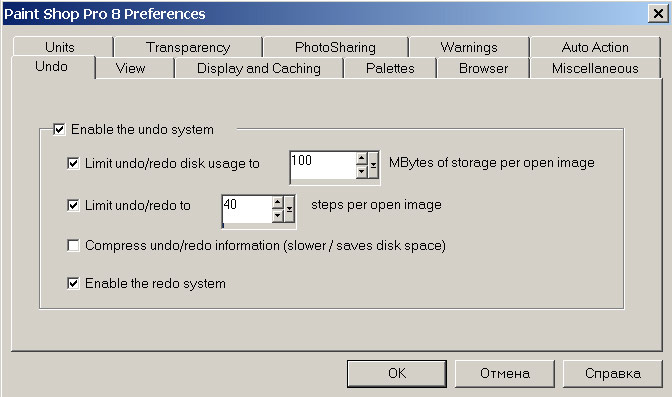 Настройка предпочтений тоже предоставляет определенные возможности по индивидуальной настройке программы и позволяет ускорить работу в Paint Shop Pro.
