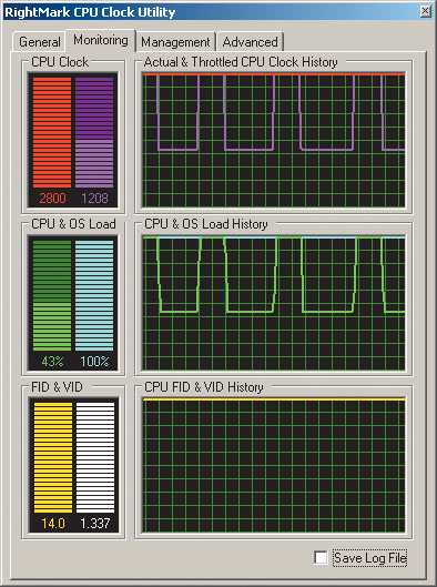 Такой подход, на наш взгляд, гораздо лучше моделирует реальную ситуацию, нежели постоянное поддержание одного, строго заданного уровня утилизации центрального процессора. Для определения температуры процессора использовалась предлагаемая производителем платы утилита мониторинга Intel Desktop Utility, при этом контроль работы схем тепловой защиты процессора выполнялся посредством утилиты RightMark CPU Clock Utility.