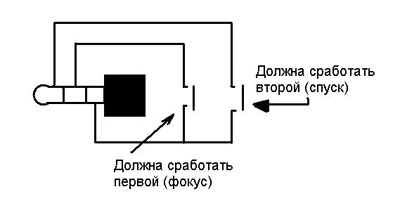 ля открытия затвора (спуска) в фотоаппаратах применяется трехпозиционная кнопка с нестабильным средним положением. Слегка притапливая кнопку до среднего положения, фотограф производит автоматическое наведение на резкость и экспозамер. А при утапливании кнопки до крайнего нижнего положения происходит открытие затвора. Такие же контакты и те же функции выводятся на разъем для подключения внешнего пульта.