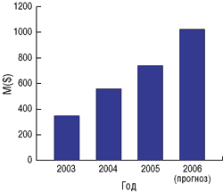 Рис. 13. Объем российского рынка офшорного программирования в 2003-2006 годах (источник — Market Visio, 2003)