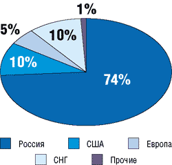 Рис. 17. Основные рынки сбыта российских офшорных компаний (источник — www.outsourcing-Russia.com)