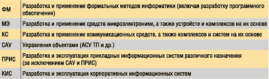В отчете произведена выборка специальностей высшего профессионального образования, которые покрывают потребности рынка ИКТ. Она включает 112 специальностей (общий список), из которых 42 (основной список) предусматривают углубленное изучение ИКТ.