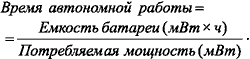Как известно, продолжительность автономной работы ноутбука от аккумуляторных батарей зависит от потребляемой ноутбуком мощности и емкости его батареи, причем: