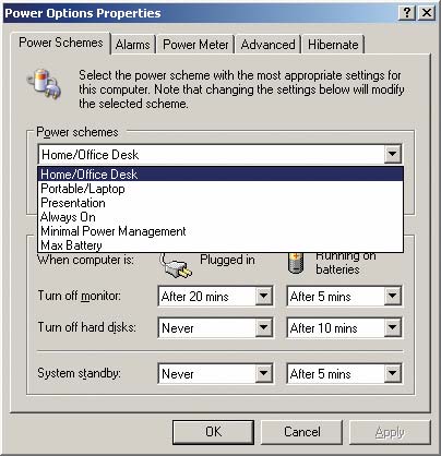 Всего в операционной системе Windows XP предусмотрено шесть схем питания: