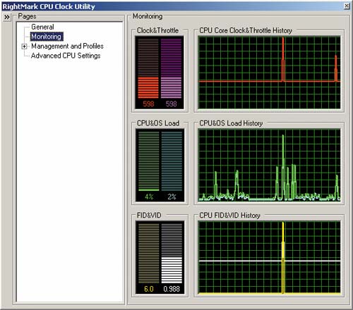 Рис. 4. Окно Monitoring утилиты RMClock 2.05