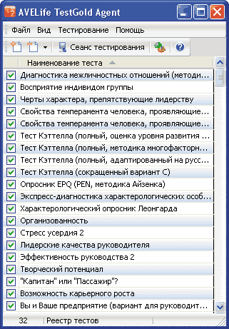 Наличие более 300 готовых тестов (маркетинг, интеллект, психологические методики и др.) позволит сразу приступить к применению программы. Утилита имеет подробную и хорошо структурированную документацию, освещающую все аспекты использования программы. Для проведения тестирования предусмотрена специальная бесплатная программа AVELife TestGold Agent, способная достаточно быстро работать даже на маломощных компьютерах.