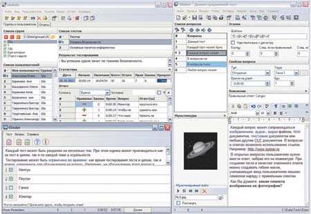 Все тесты и результаты тестирования шифруются, что исключает возможность подделки результатов. Вопросы и варианты ответа можно форматировать, используя для этого встроенный текстовый редактор, близкий по своим функциям к MS Word. В редакторе можно вставлять изображения, формулы, схемы, таблицы, аудио- и видеофайлы, HTML-документы и любые OLE-документы.