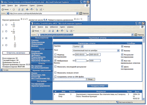 Программы «Место пользователя» и «Место преподавателя» разработаны таким образом, что могут работать как с локальными данными и пользователями (персональное тестирование), так и с удаленными данными и пользователями (тестирование через Интернет).