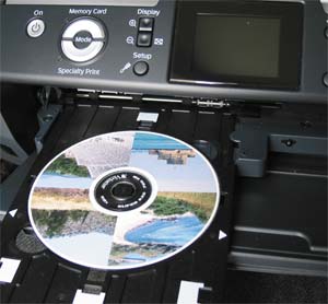 В режиме «Специальная печать» Stylus Photo R340 позволяет печатать изображения с карт памяти на декоративной поверхности оптических дисков
