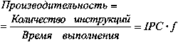 где IPC (Instruction Per Clock) — количество инструкций, выполняемых за такт; f — тактовая частота.