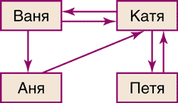 - напрямую, если между вершинами есть ребро или дуга — так, например, на социограмме (рис. 4) связаны Ваня и Аня;