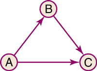 Связи графа могут быть направленными или ненаправленными. Отношения вроде товарищества или соседства формируют граф с ненаправленными связями (рис. 3). Вариант графа с направленными связями показан на рис. 4. Данный граф построен по ответам на вопрос «С кем бы вы хотели дружить?», заданный коллективу из четырех человек.