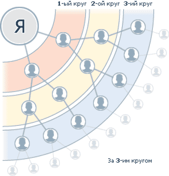 Ваша сеть строится на ваших контактах и на контактах ваших знакомых и т.д., что позволяет добраться до нужного человека определенного профиля и квалификации.