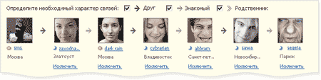 Для того чтобы выяснить, как люди знакомы друг с другом, программа показывает цепочку связей от одного человека к другому (рис. 15).