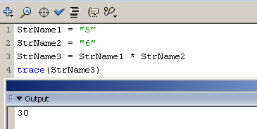 Для того чтобы избежать путаницы, лучше не использовать конструкции, в которых имеет место перемножение строковых переменных. Тем более что строковую переменную, составленную из цифр, легко перевести в численный тип. Для этих целей служит функция Number ( ).