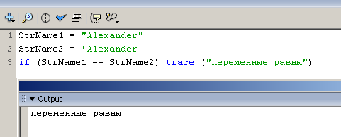 if (StrName1 == StrName2) trace ("переменные равны")