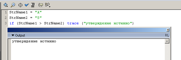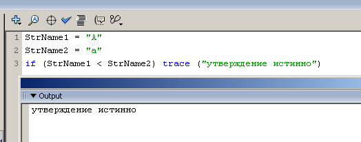 Возможно, для тех, кто только знакомится со строковыми переменными в ActionScript, следующее утверждение покажется странным, тем не менее — для строковых переменных справедливо не только понятие равенства/неравенства, но и то, что одна строковая переменная может, например, быть больше другой!
