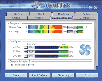SilentTek управляет такими функциями, как Hardware-Status Monitoring (наблюдение за состоянием системы), Overheat Warning (предупреждение о перегреве) и Fan Speed Control (регулировка скорости вентилятора). С помощью SilentTek можно достичь оптимального баланса между шумом, производительностью и стабильностью системы.