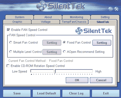 Оригинальная разработка инженеров AOpen называется SilentTek — эта функция встроена в BIOS и к тому же имеет специальную фирменную утилиту управления под Windows.