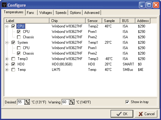 Однако для работы такой программы необходимо соблюдение следующих условий: показания аппаратных температурных датчиков должны быть доступны для считывания программой (то есть программа должна «знать» вашу системную плату), аппаратные средства компьютера должны обеспечивать изменение скорости вращения вентиляторов и, наконец, пользователю придется самостоятельно настроить программу и следить за ходом ее работы (по крайней мере выяснить безопасный диапазон температур, при которых не выйдут из строя те или иные компоненты компьютера).
