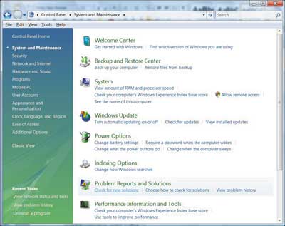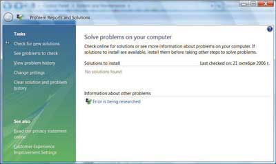 Новый компонент Control Panel в Windows Vista — Problem Center (Problem Reports and Solutions), доступный в разделе System and Maintenance (рис. 1), — отображает список проблем в хронологическом порядке, отосланные отчеты об ошибках и предоставляет доступ к решениям проблем по мере их поступления.